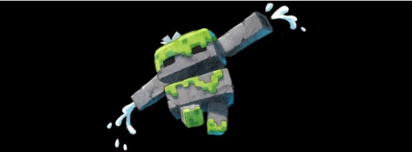 Одним из таких мобов является булыжный голем, получивший уникальный внешний вид, отличающийся от оригинального существа в Minecraft. И, несмотря на невзрачный вид булыжников, големы получились очень даже симпатичными. Если верить словам разработчиков, он принимал много разных форм на стадии разработки и тестирования, и наконец-то обрел окончательный вид. Эти мобы могут наносить огромный урон по свиньям, используя разные тактики.
