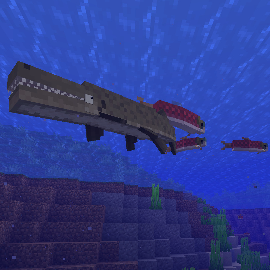 Мод добавит в майнкрафт в реки аллигатора. Он большой, больно кусает и у него много здоровья. Обычно он плавает по миру игры, иногда кусает животных, но не всегда, так как может быть сытым. Он сделает реки в игре гораздо более опасными. Приручить его нельзя. Моделька сделана достаточно годно.