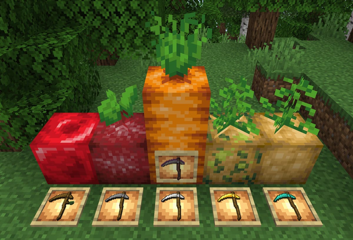 Мод добавит в майнкрафт возможность вырасти овощам и фруктам в огромных размеров урожаи, которые могут быть размером с пару полноценных блоков. Понятное дело, что это даёт по итогу большое количество еды. Мод добавит также в игру серп, которым можно собирать свой урожай, а также чистить местность от травы, или же можно использовать просто как оружие.