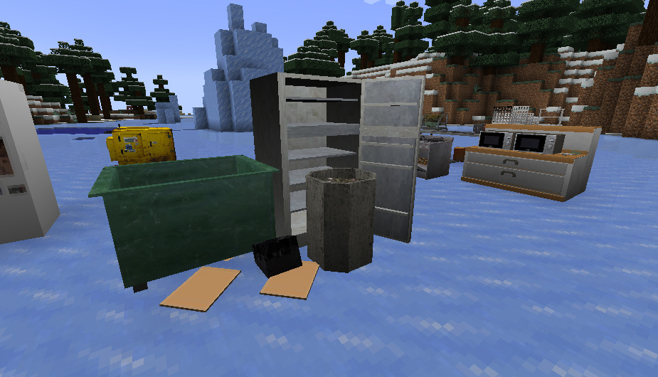 Мод добавит в майнкрафт просто огромное количество декоративных блоков, которые позволят изобразить в игре полноценный зомби-апокалипсис. Тут есть и модельки генераторов, раковины со стухшей едой, стеллажи с коробками, проводка с распределительными щитками, останки от людей в крови, банкоматы, вендинговые аппараты с едой, мусорные бачки, столы с недоеденной едой и стулья и много чего ещё.