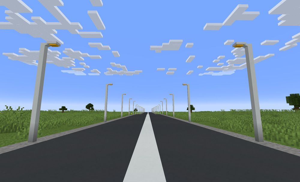 Мод добавит в майнкрафт отдельную генерацию мира - это будет плоский мир с бесконечной дорогой с двумя полосами для движения и с фонарными столбами. Мир по сути будет обычным - все также в нем будут спавниться биомы, но все они будут плоские, а дорога будет бесконечно уходить вдаль - рядом с ней можно будет строить город с районами и пользоваться дорогой при помощи автомобилей.