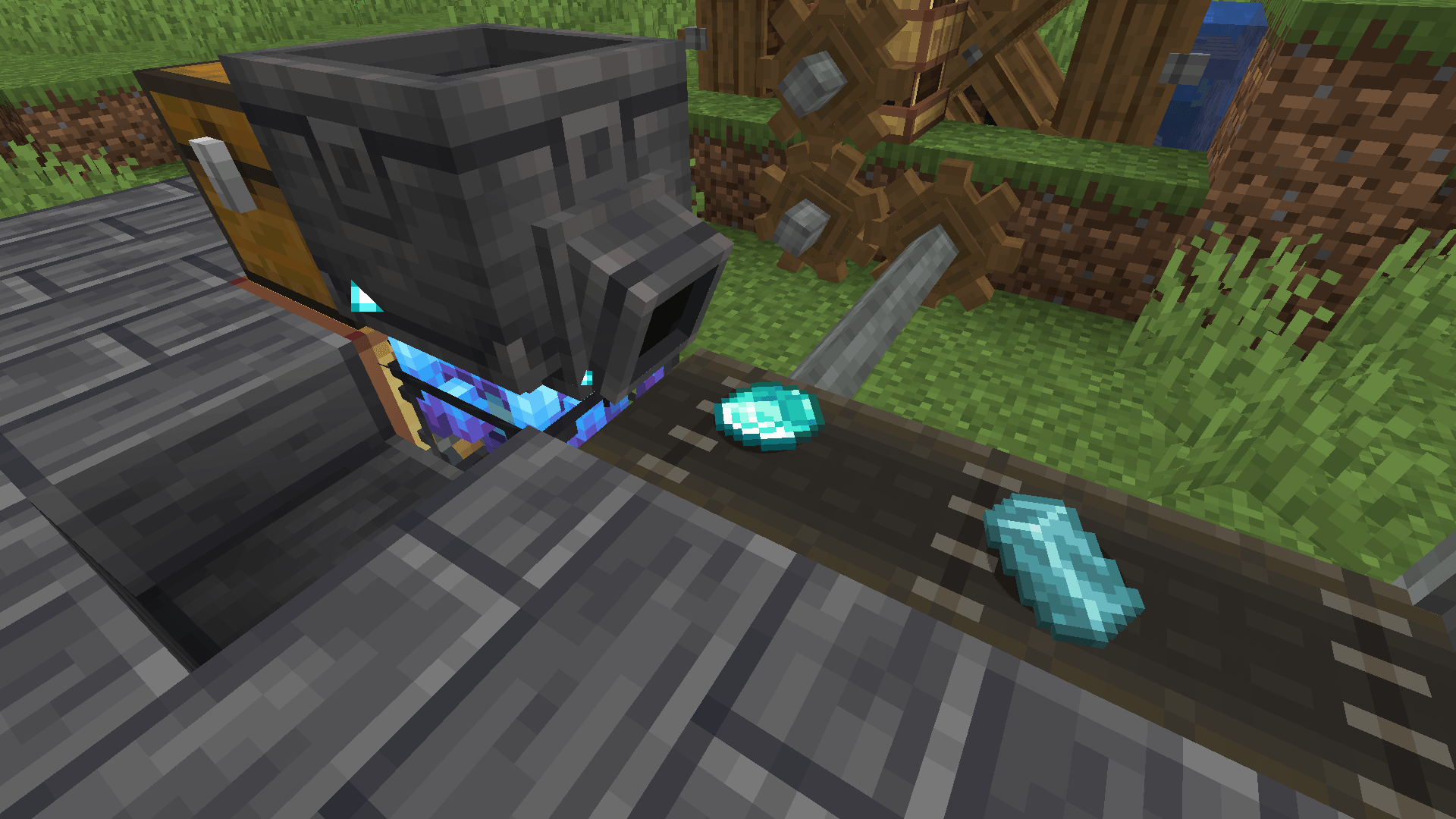Мод вводит уникальную цепочку крафта для добычи алмазов и редких ресурсов: из ледяных блоков получают жидкость Замороженная жидкость, которую перерабатывают в замороженный слиток, а затем дробят в порошкообразный Фриз с помощью Измельчающего колеса. При плавке слитка в доменной печи образуется замороженный кварц, который полируют наждачной бумагой до блеска. Для создания миксера используют полированный кварц, порошок и пламенный торт, этот аппарат позволяет автоматически производить алмазы и другие ценные материалы, открывая новые возможности для автоматизации.