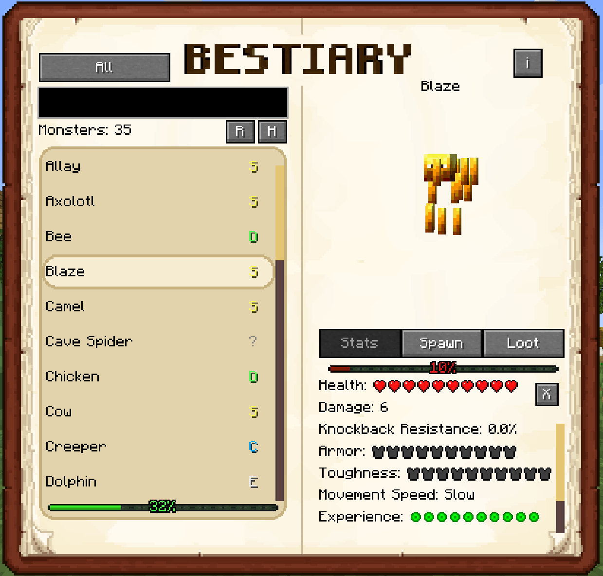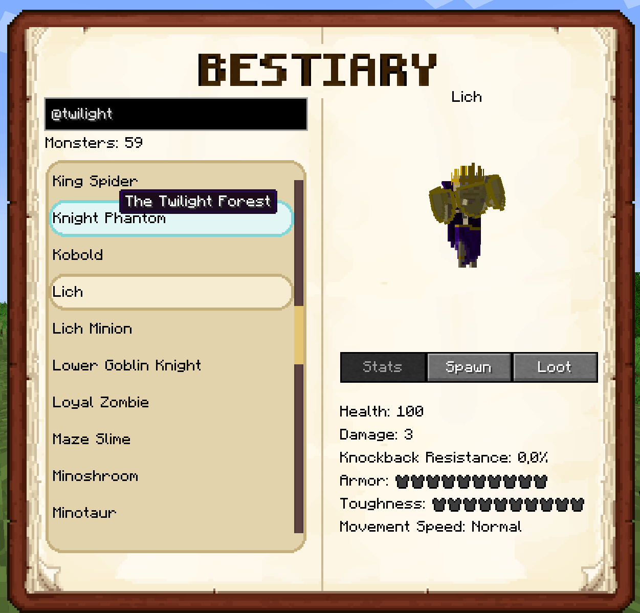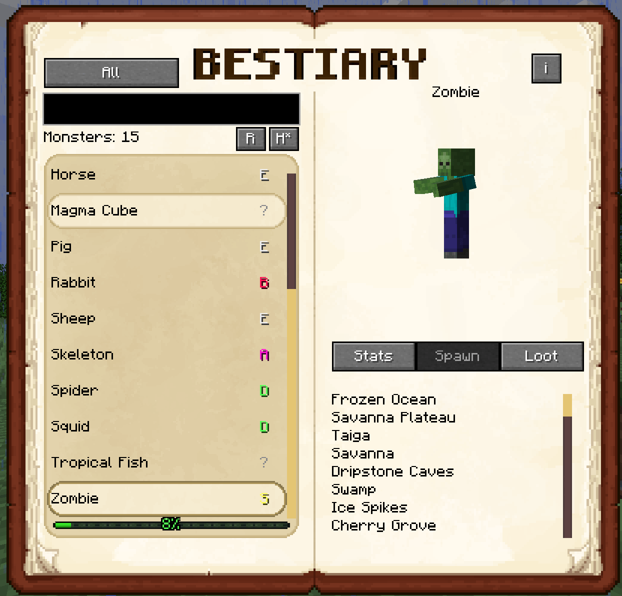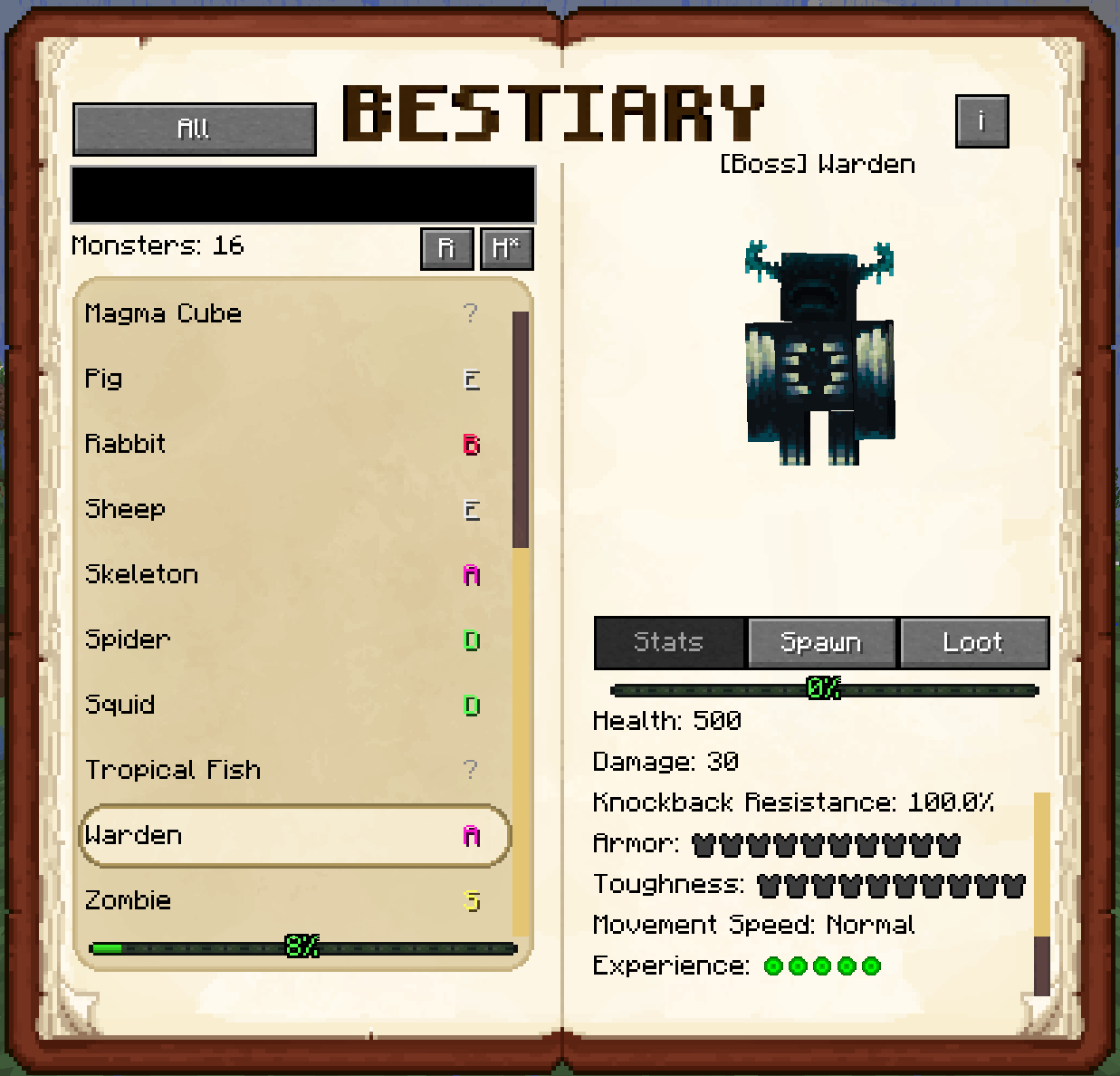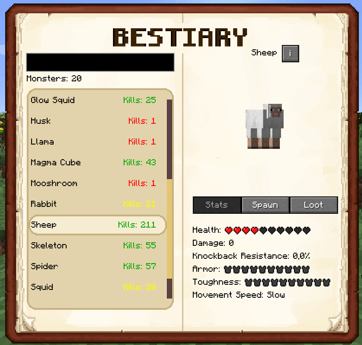 Araxer's Bestiary - мод добавит интерактивный внутриигровой бестиарий, который автоматически создает подробную энциклопедию всех существ Minecraft, предоставляя игрокам точную информацию об их характеристиках, местах появления и выпадающем луте.