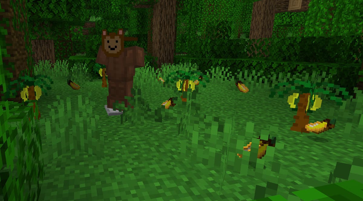 Мод добавит в майнкрафт обезьянок. Найти их можно будет, очевидно, только в джунглях. Они едят фрукты, они защищают своих мелких представителей всей группой, у них несколько стадий роста от маленького к большому виду. С них можно залутать предметы для крафта маски обезьяны. С ними джунгли выглядят гораздо живее и разнообразнее.