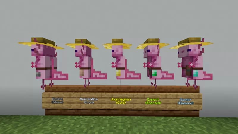 Ресурспак изменит в майнкрафте внешний вид жителей на аксолотлей - теперь буквально во всем мире вместо привычных носатых друзей-жителей будут бродить, спать и заниматься своими рабочими делами аксолотли. Причем автор не поленился и сделал для каждого биома своего уникального аксолотля, включая и уникальные виды под каждую работу.