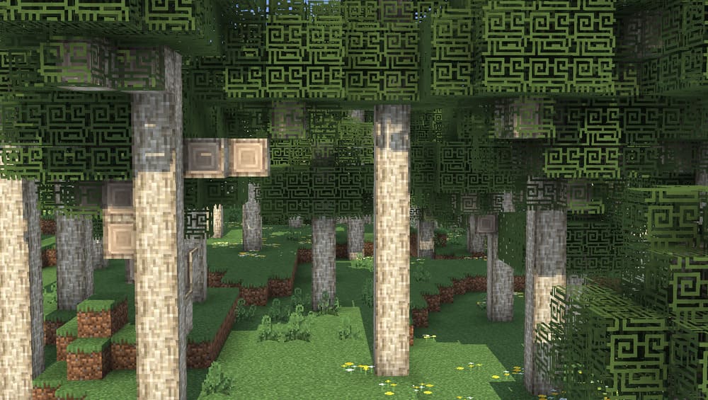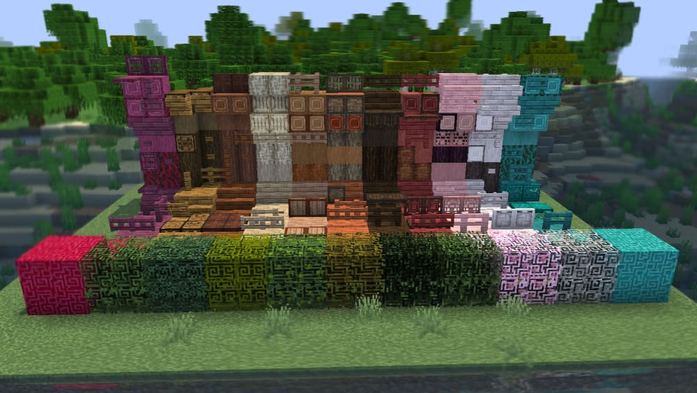 Ресурспак изменит в майнкрафте внешний вид всех деревьев - у них будет новая, более тёмная листва, а также сами блоки дерева тоже будут новые, а вместе с ними соответственно и все вещи, что делаются из дерева - кнопки, лестницы, заборы, резное дерево и другие. Листва у разных типов деревьев будет отличаться как цветом, так и структурой - на скриншотах всё видно.