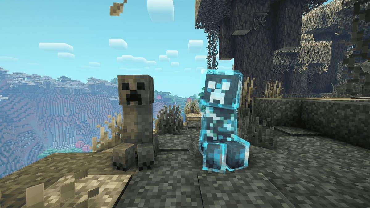 Автор ресурспака изменил в майнкрафт внешний вид криперов, при этом текстура по сути осталось та же, только в разных биомах она выглядит по-разному - где-то темнее, где-то светлее, а где-то будет коричневая, если это глубоко под землей, или же может быть розовы, если это черешневый биом.