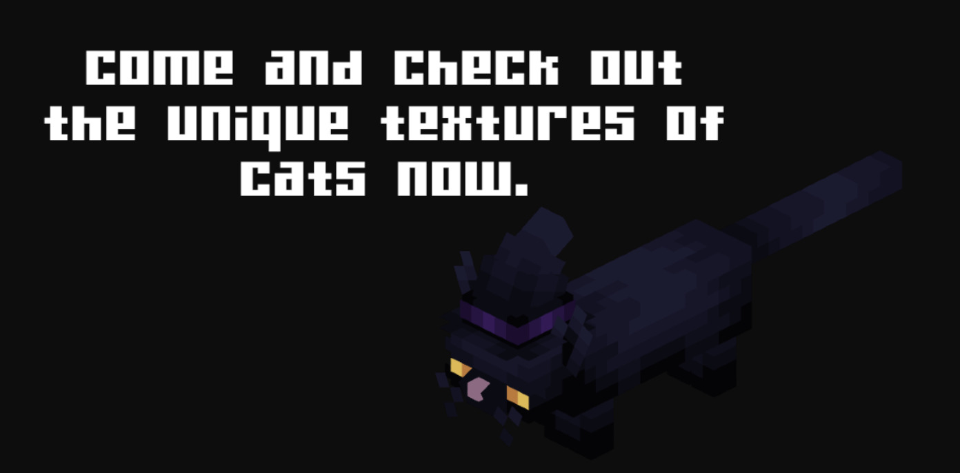 Если тебе необходим ресурспак для придания котам как нового вида, так и в целом разнообразия для них, то эти текстуры отлично для этого подойдут.