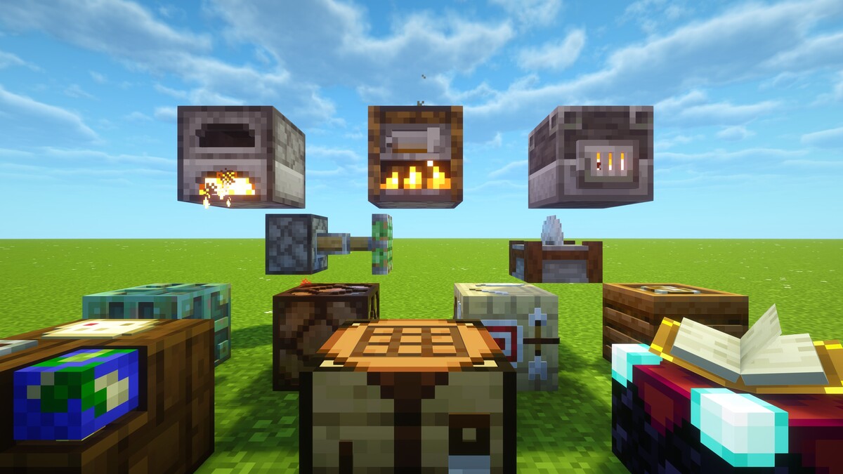 Заменены как предметы по типу кирок, лопат, мечей и других инструментов, так и обычные блоки по типу печек, бочек, шкафов с книгами, подвесных табличек, грибов и прочих предметов. Автор советует (но это необязательно) установить шейдеры Complementary, Continuity.