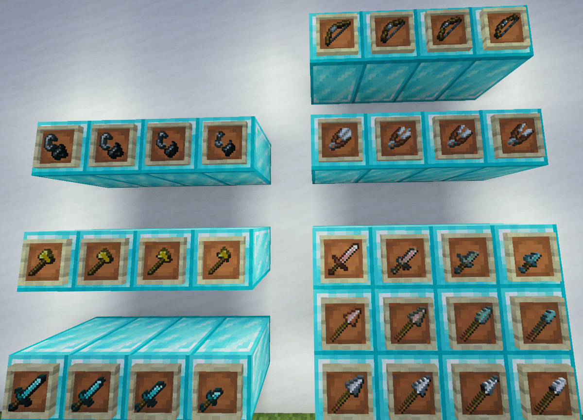 Ресурспак добавит в майнкрафт разрушение предметов, которое напрямую связывается с их прочностью - чем меньше прочности осталось у предметы, тем хуже он выглядит внешне. Относится это ко всему инструментам и оружию, включая копье и лук, а также к некоторым вещам по типу огнива и ножниц.