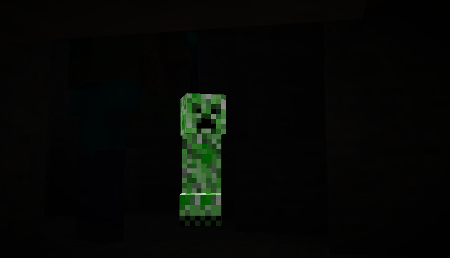 Некоторые мобы по типу крипера вообще подсвечиваются всем телом, что делает задачу его обнаружения еще проще.