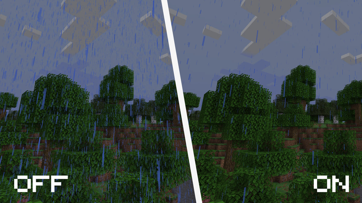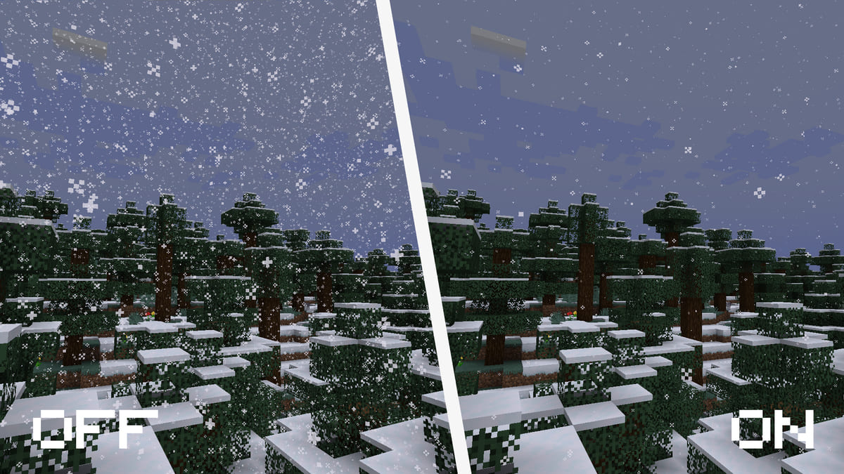 Ресурспак изменит в майнкрафте частицы, они будут все также похожи на свой дефолтный вид, но более ненавязчивые (простые, лайтовые) - дождя будет чуть меньше, чтобы он не мешал, как и снега, дыма от костра будет меньше от любого источника огня, и все остальные эффекты будут более простыми графически, чтобы не мешать игроку.